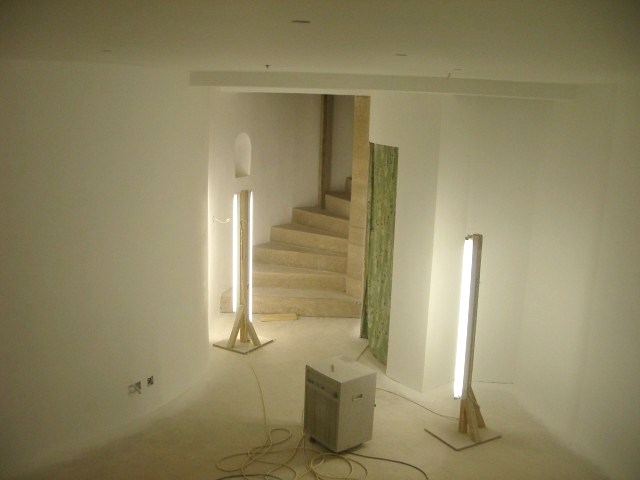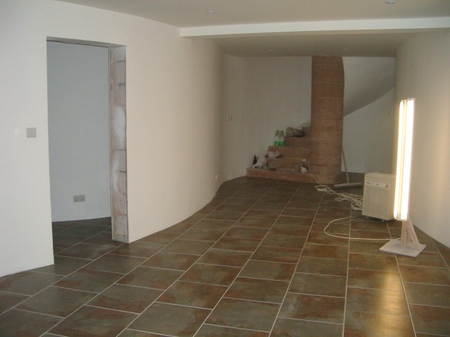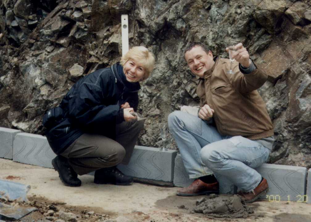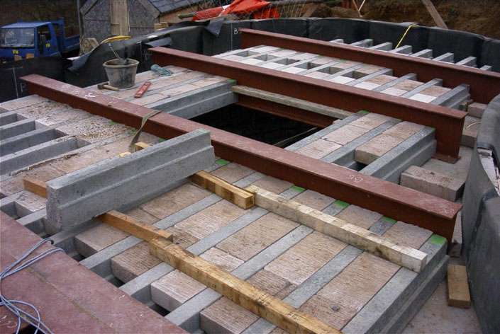 At that time, all excited by the size of it, we used to spend long moments standing and gazing upon it. Home. The general comment about our project during these first years was “Why do you want to live in a hole”? What could they mean? The Malverns are seriously old hills. You can tell this because the rock is not at all supple. It is in fact pretty hard, but luckily brittle and full of fractures, and it is generally possible to break it up with sturdy excavating kit. It also drains better than I expected. The rock walls were deemed self supporting, which was a good thing (a bit of judicious deeming here and there can make a big difference in construction). Nevertheless, a thick wall seemed like a good thing. The STRUCTURE BELOW GROUND consisted of a 100 mm lightweight block skin, with 100mm of extruded polystyrene outside. The gap between the rock face and the insulation was backfilled with no fines concrete (gravel and cement paste), to form a self supporting fill so as not to load up the wall, which would also allow free drainage to an outside sump cut in the rock wall (if you try this at home, you will learn after a couple of times not to backfill too deep at once. After you get over the wall falling on you, you have the fun of shovelling up several tons of concrete mixed with broken blocks before it sets. It is only self supporting after it sets).