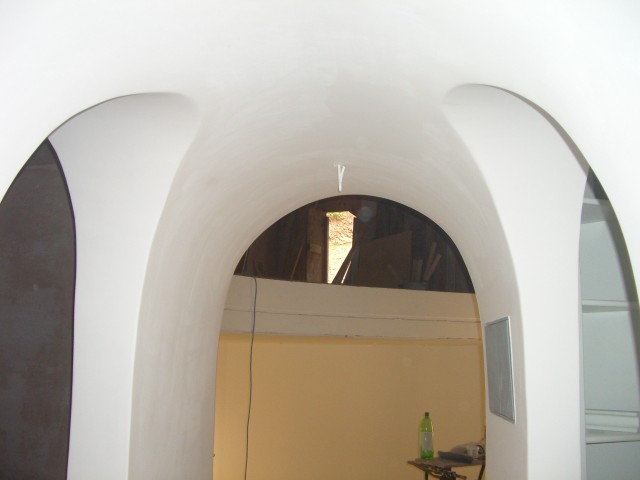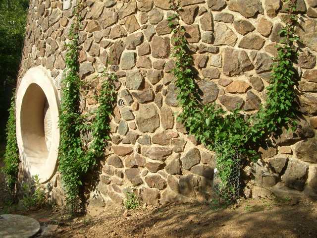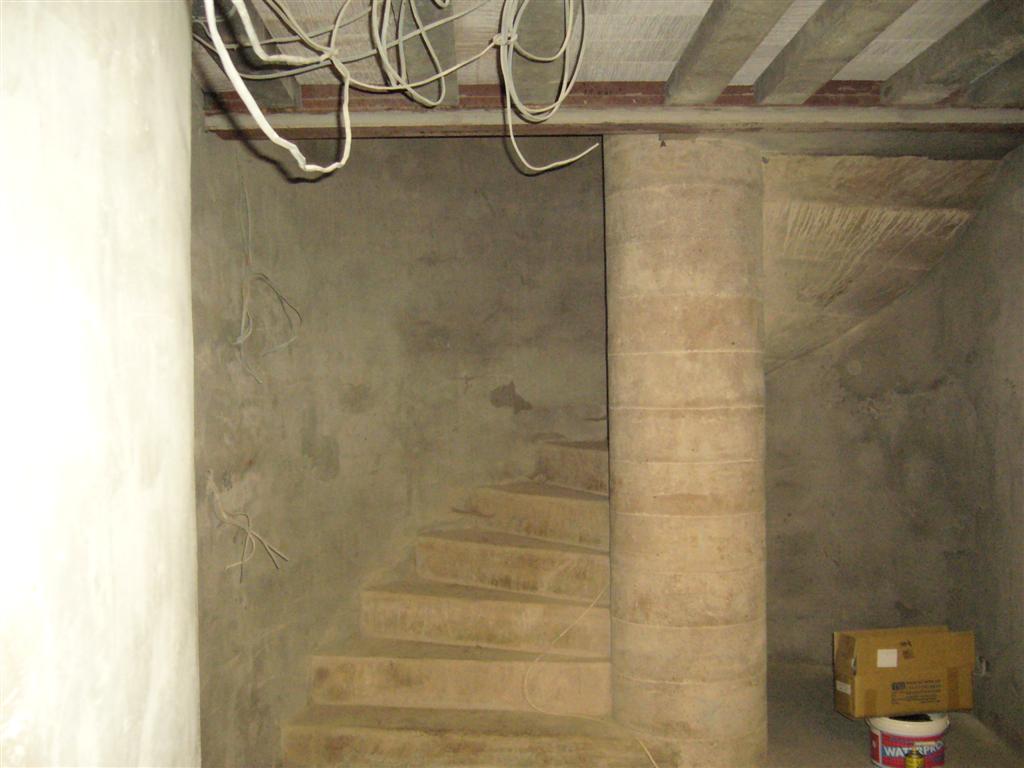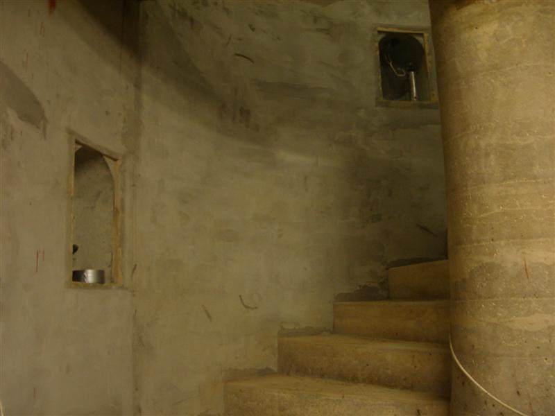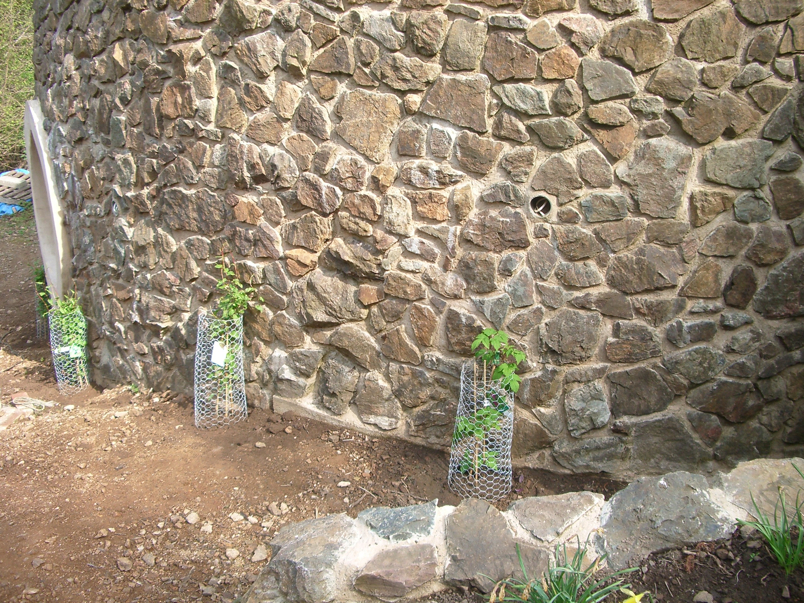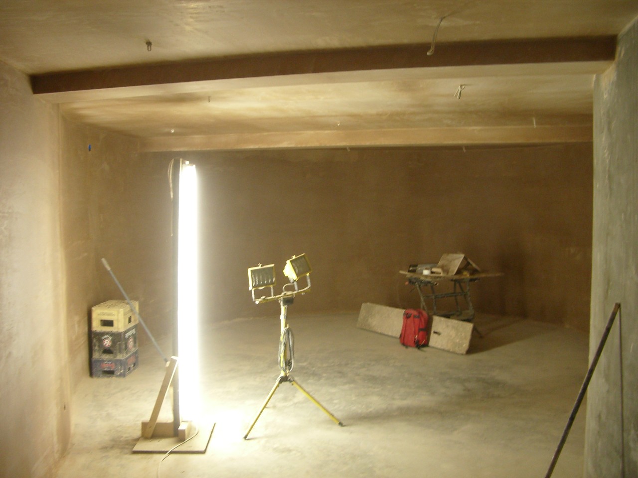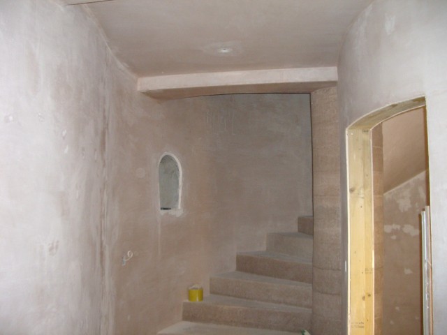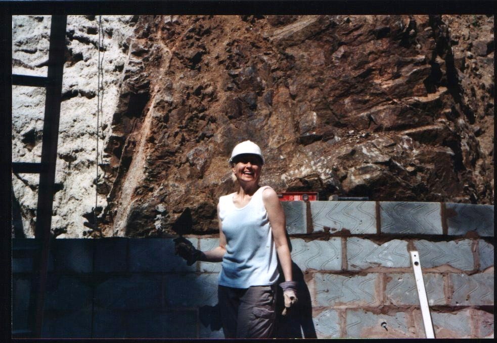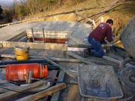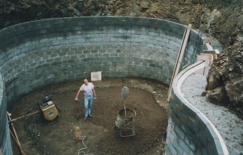 The plans called for an annexe, a kind of large bed-sit at the western end of the house, and this was to be the starting point. It had a deep cellar, mainly to practice the techniques needed for the larger cellars in the main house, and so an oval hole 6m deep was dug, and 1500 tonnes of broken rock carted off site. Because of the poor access, this was done, at some length, in about 400 small truck loads, and took a week of eleven hour days to excavate the hole removing around 1500 tonnes of rock to a location provided by a helpful local farmer (who now has driveways and hard standings to rival any posh city folk).
